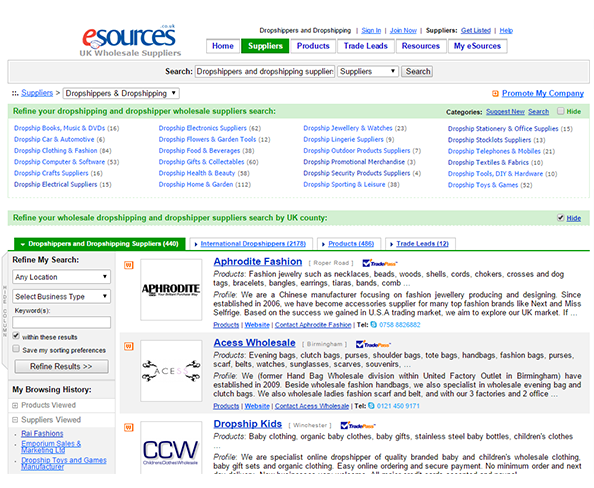 eSources is the safer, easier way to identify and trade with tens of thousands vetted wholesale and drop ship suppliers. The service allows anyone to start a successful resale business within weeks, safe in the knowledge that every supplier has been individually vetted and is constantly monitored.